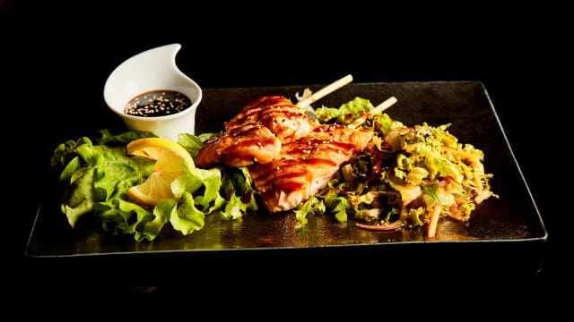 Pavé de saumon, petite salade thai, graines de sésame, sauce teriyaki