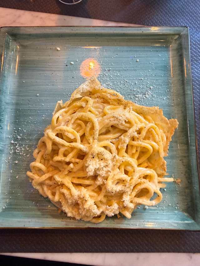 9/10I booked a table prior to arriving in Rome we arrived early and said we would take a table outside rather than wait for one inside, we were served well for drinks and food order but once food arrived I was not offered Parmesan or pepper etc someone on the next table offered us his Parmesan as was ignored and also not asked if all was ok and never had any interaction until we asked for the bill maybe need to be a bit more attentive to guests outside even in March 😊