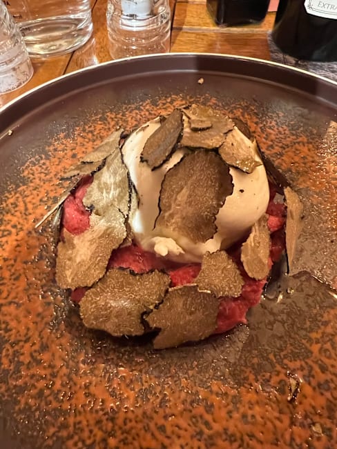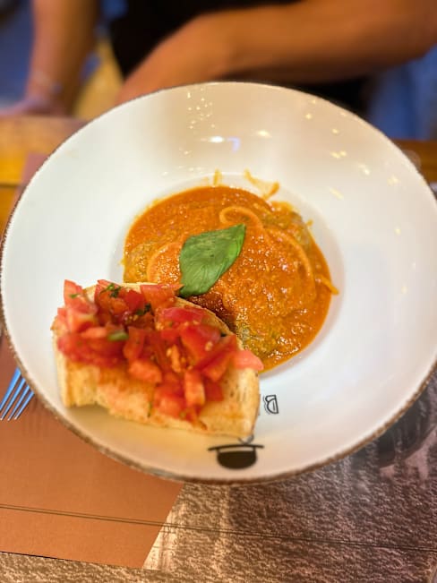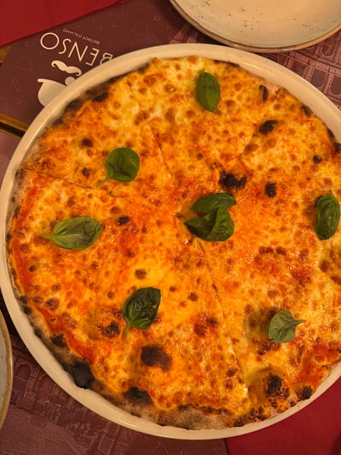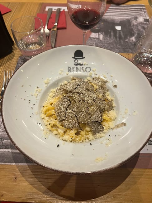 4.5/10Benso was recommended by our airbnb host! So I made dinner reservations for my birthday (2 June) with the excitement and possibility of having one of our best meals in Rome. Unfortunately, it was not as good as we hoped. 😕 The Fiumi di pecorino pioggia di formaggio, came out extremely dry, and our other spaghetti and meatballs dish had no flavor! But the ravioli, the rosso vino was good and the pistachio tiramisu was delicious. Last, we did feel a little, rushed like they were trying to turn the tables over quickly, although this was a Sunday night.