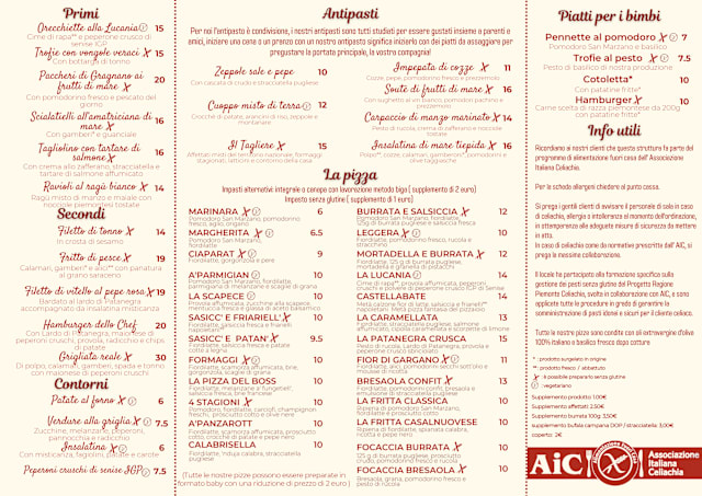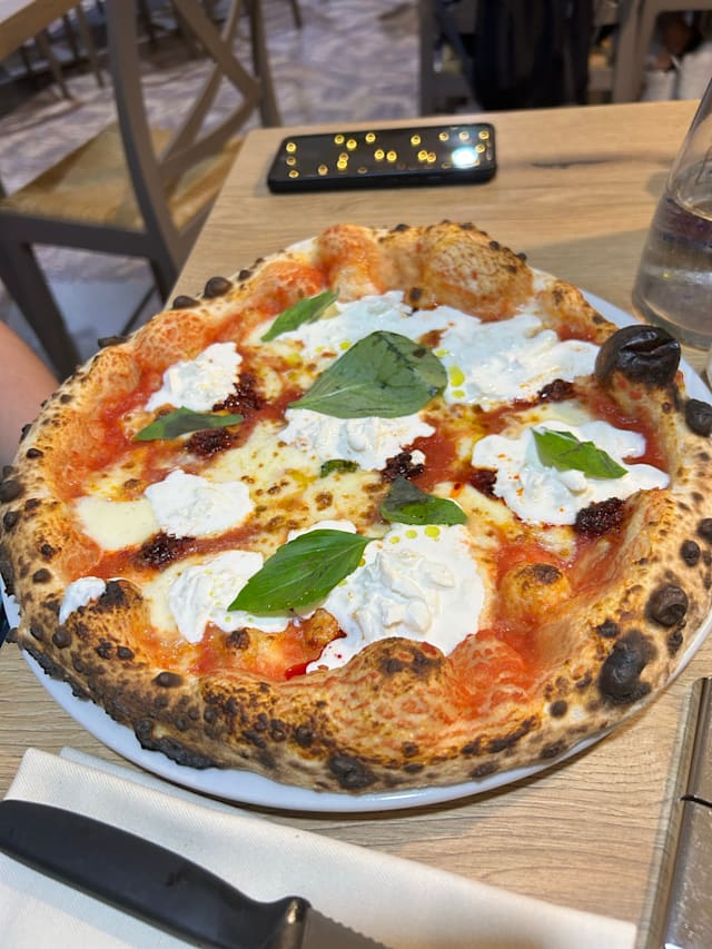 4.5/10Over-rated. We arrived at 20:00, able to order at 20:30 despite the empty restaurant. We had to ask twice for service to order. We ordered “zizzona” and 6 more pizza (2 of them gluten free). We waited 40 minutes for “zizzona” because of gluten free focaccia (they said). At 21:40 the pizza wasn’t ready and we had to complain that we arrived at 20:00 sharp. End of history? One of us had to leave at 21:50 without eating, the others had a very bad burned pizza that ended to rise in the stomac all night long, all other customer arrived later and finished earlier. The justification of 20’ cooking time for gluten free is not believable when you spend 2 hours waiting