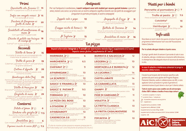 Over-rated. We arrived at 20:00, able to order at 20:30 despite the empty restaurant. We had to ask twice for service to order. We ordered “zizzona” and 6 more pizza (2 of them gluten free). We waited 40 minutes for “zizzona” because of gluten free focaccia (they said). At 21:40 the pizza wasn’t ready and we had to complain that we arrived at 20:00 sharp. End of history? One of us had to leave at 21:50 without eating, the others had a very bad burned pizza that ended to rise in the stomac all night long, all other customer arrived later and finished earlier. The justification of 20’ cooking time for gluten free is not believable when you spend 2 hours waiting