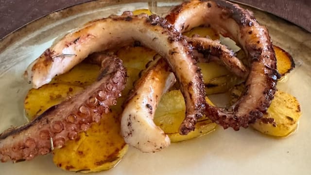 Un primo piatto a base di pesce molto raffinato, realizzato utilizzando prodotti freschi e di prima qualità. A very refined seafood first course, made using fresh, top-quality products.
