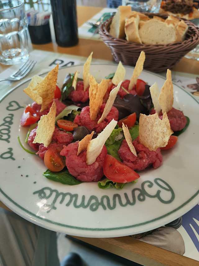 - Gnocco modenese, prosciutto crudo di parma 18 mesi, coppa stagionata IGP, mortadella ai pistacchi, bruschetta al battuto di lardo e rosmarino, stracchino, crema di gorgonzola DOP e mascarpone, pizza fritta farcita con salsa di pomodoro, ricotta salata e basilico fresco