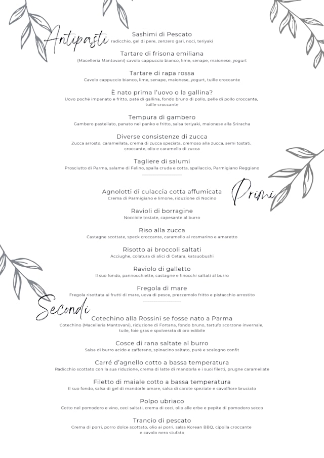 10/10The attention to detail, the food was amazing it’s such a lovely put together menu, the host was such a nice guy and made my fiancé and myself at ease. The pianist was an added bonus. This made my birthday very special. Would definitely return if in Parma!