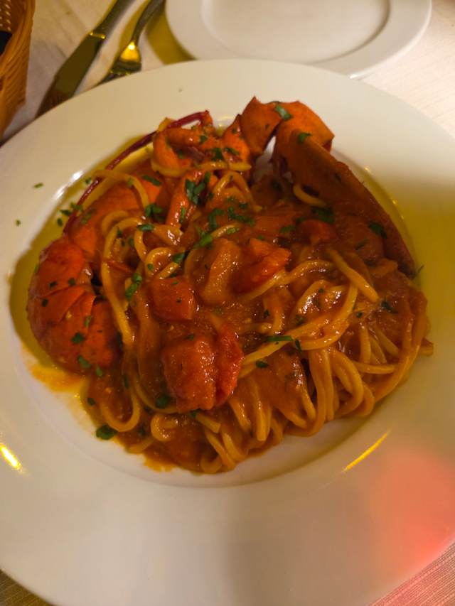 - Rigatoni with guanciale, pecorino cheese, crushed red pepper, tomato sauce