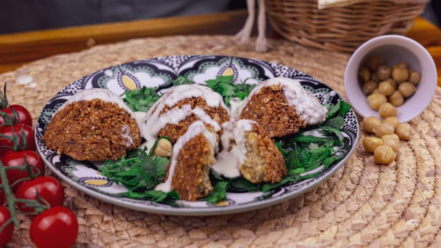 - Boulette croquante composée d’un mélange de pois chiches,ail,persil et des épices