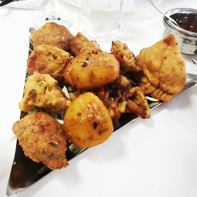 Gamberetti cotti nel tandoor e insaporiti in pesto di curry.