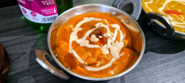 Bocconcini di formaggio fresco indiano cotti in salsa curry, peperoni e cipolla con coriandolo fresco