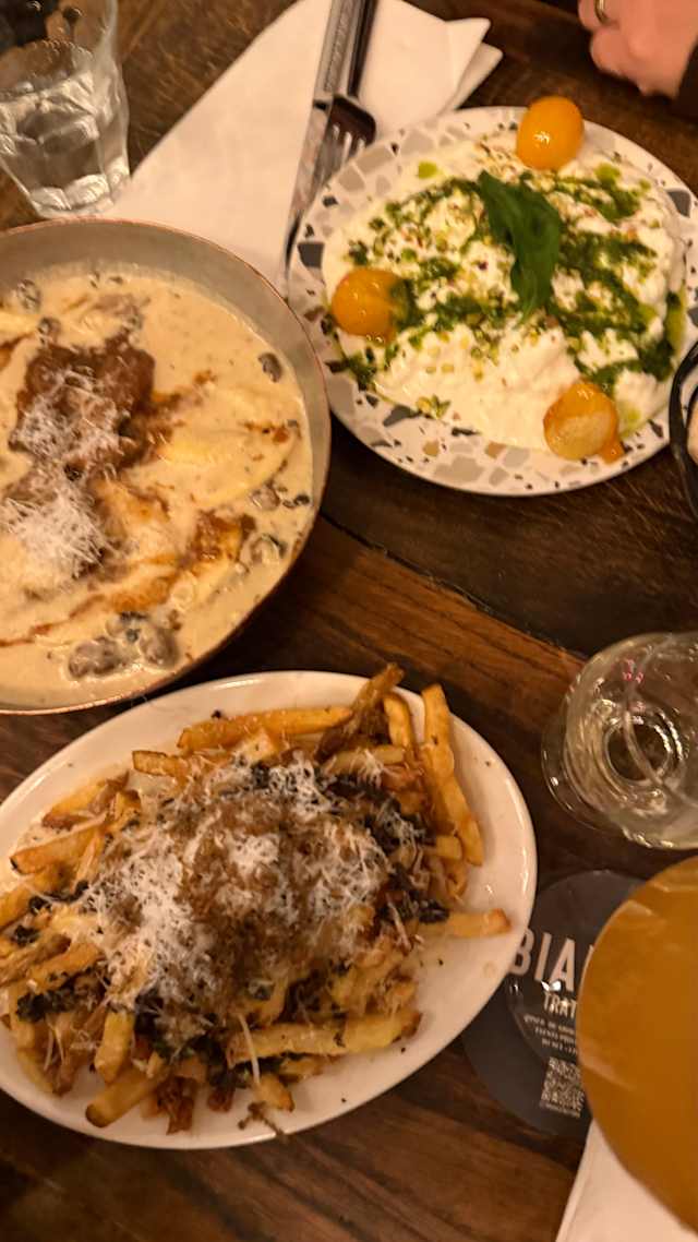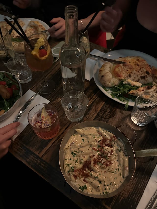 6.5/10We ordered a margarita pizza, ossubuca, and Cesar salad. They all tasted nice, and we were hungry, but the pizza and ossobuco were both cold. The family next to us sent their dishes back to the kitchen because they were also cold. Restaurant seemed under staffed and overwhelmed as a result.