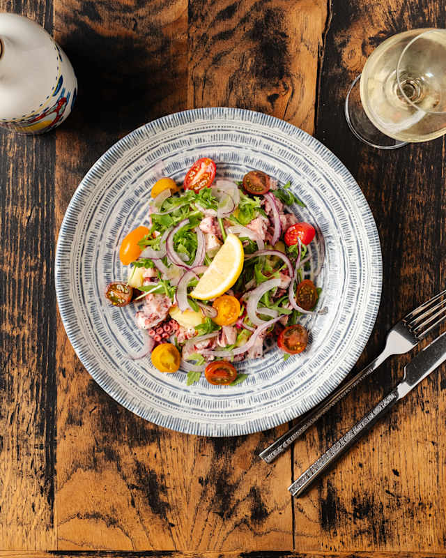 - Salade de poulpe mariné et écrasé de pomme de terre tiède