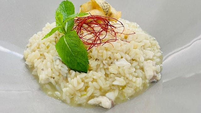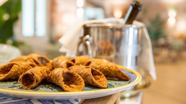- Arancino al ragù di triglia rossa e finocchietto su passata di pomodoro giallo