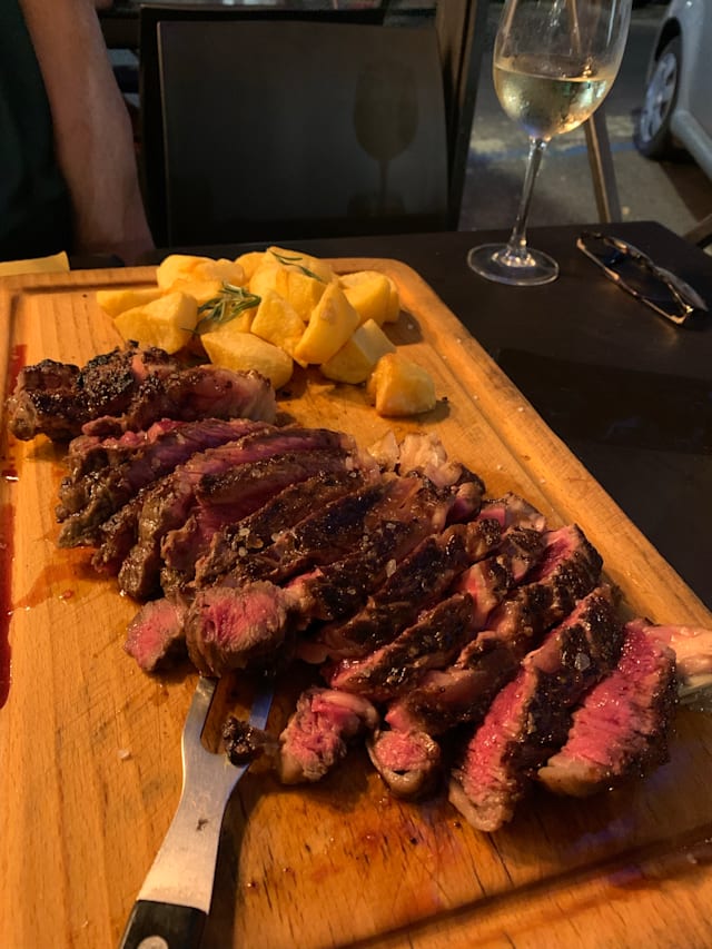 10/10Being a meat lover I was in paradise, my wife and I chose the steak for two persons sharing platter which came with wonderful roasted potatoes full of flavour. The steak was the best we had tasted anywhere and just melted in our mouths, having been cooked on a BBQ grill it too was full of flavour. The house wine was lovely too. If you are looking for an unpretentious restaurant with a friendly host and good value then look no further. We will definitely add this restaurant to our return visits.