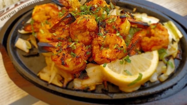 Marinados en yogur, al tandoor y salsa de tomates frescos y curry intermedio
