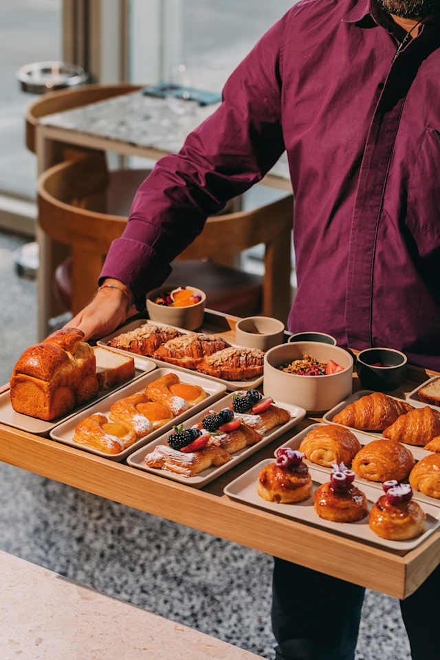 - Seleção de Viennoiserie, pão, compota e manteiga