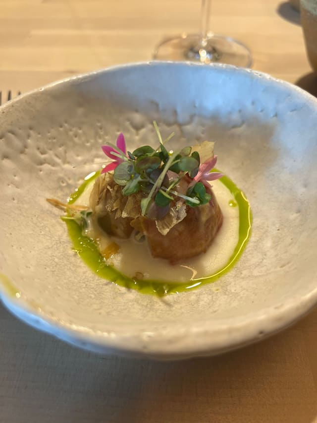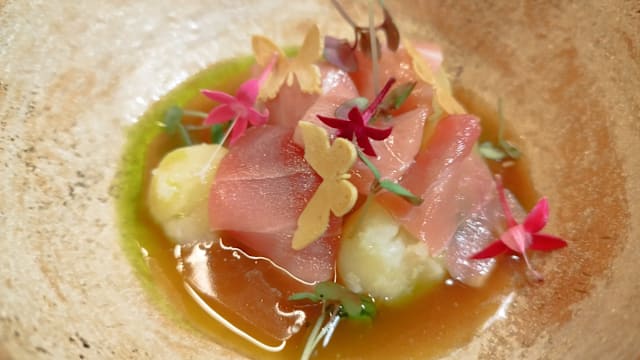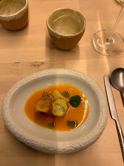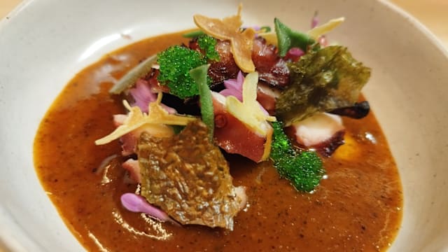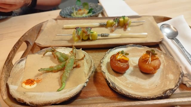 7.5/10We enjoyed the dishes, especially the first seven. Beautifully presented, with many good flavors and bold combinations, which were very positive. The pumpkin and mushrooms are often repeated, even though it's already April. Perhaps because we're not Spanish, but we miss the hospitality. The service does its job, but nothing more. A good experience, definitely worth trying. The price-performance ratio is reasonable. The hour and a half they give you is too short; I understand the maximum time indicated, but two hours would be better.