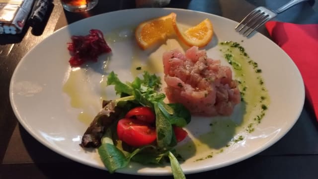 10/10carpaccio di black angus - a must have. grill dishes - house specialty. tiramisu with coffee icecream - novelty and delicious. red wine from Toscany. 🙂 exquisite interior design .