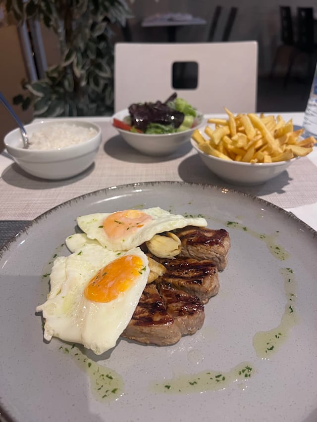 9/10We recommend for the starter Ovid Com farinheira and then Lombo steak with molho da casa. It was really good. For desert Doce da casa. The best part was the service, really friendly and warm. Great experience!