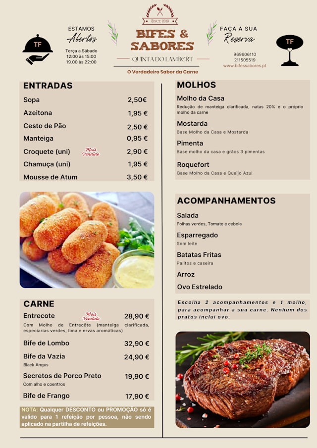 preciamos que tenha gostado dos nossos bifes, Primamos por uma carne de qualidade. O Entrecôte e os croquete são as nossas especialidades. Volte sempre.
