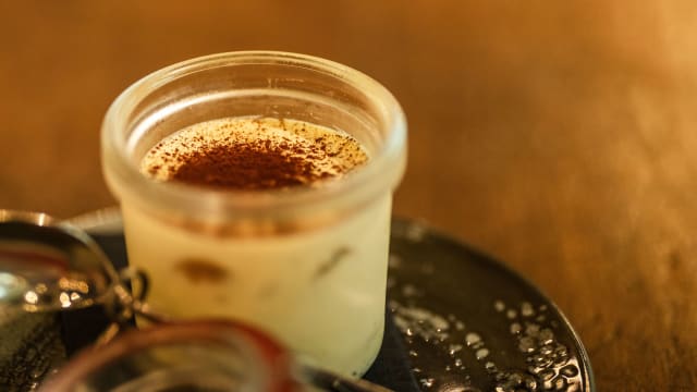 Tiramisù di nostra produzione alla birra black IPA, birra nera dal carattere torrefatto e agrumato.