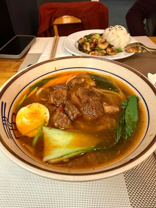 8/10Nice and cosy place, very well decorated and good service. The veggie ramen was very good 👍 it would be good to have more vegan/veggie options.