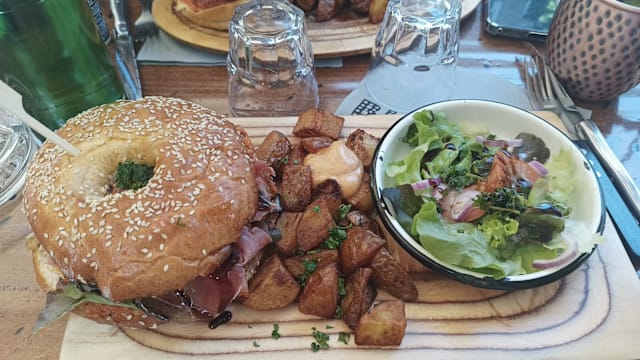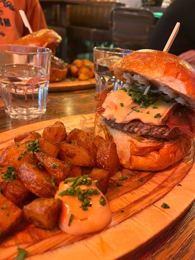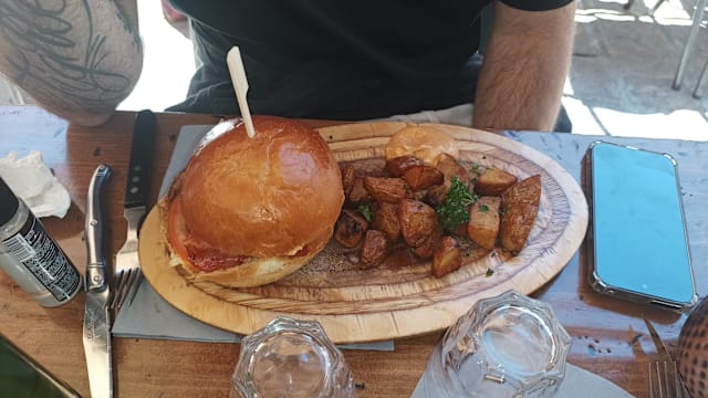 3/10I wanted to give 0 stars but it’s not possible so I gave 1. The burger was the absolute worst that I had ever had in my entire life. Not a single pinch of salt or any other spices were added to any of their food. The burger was sooo undercooked that it was literally white and looked gross let alone the taste. I had never ever regretted setting foot in a restaurant this much. Specially for such unreasonably high prices you never expect to get such disgusting food and service. The staff were rood, everything arrived late, didn’t even get some sauce to be able to tolerate the horrible burger. We had put our umbrellas ro dry, they took it away and didn’t even let us know. We asked around for 15 minutes to get our umbrellas back. Please respect yourself and your loved ones and never think of ordering any of their disgusting burgers here. Worst experience ever at a restaurant. Ruined my whole evening.