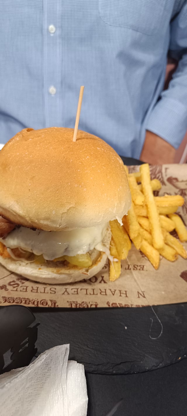 (Hamburger scottona 200g, insalata, cheddar, uovo occhio di bue, bacon croccante) tutti i piatti sono compresi di contorno di patatine fritte