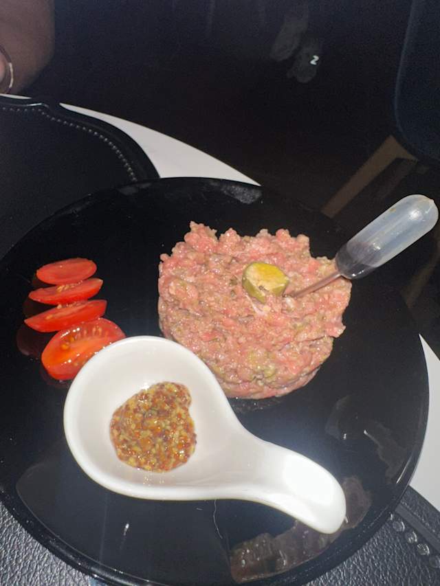 Quenelle di tartare di manzo, cipolla al mezcal, stracciatella di burrata, alicetta