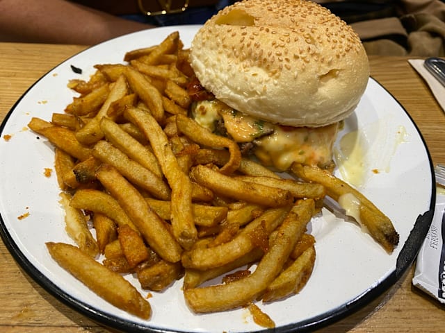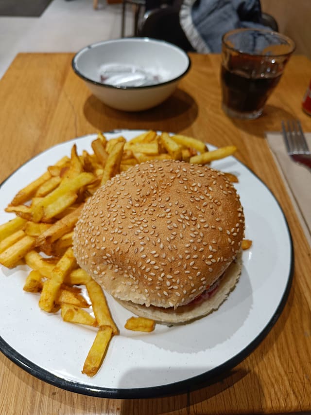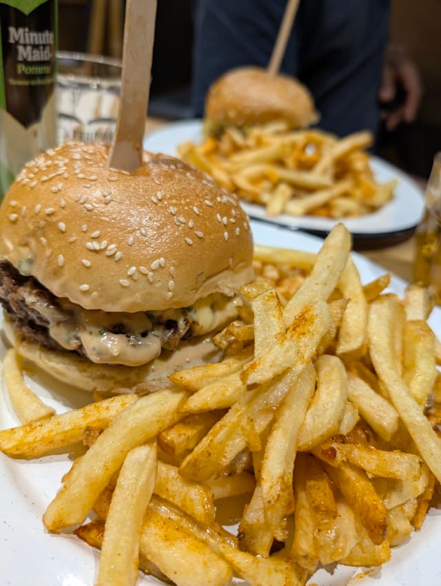 10/10My spouse and I were very hungry and in the mood for a great big juicy burger and we were very happy with our choice. The burgers, the fries and the salad were all very deli ious and satisfying. The new Manager served Us himself and He is very accommodating, helpful and quick. We ate outside, it was windy but a very beautiful night to take in the Parisian ambiance.