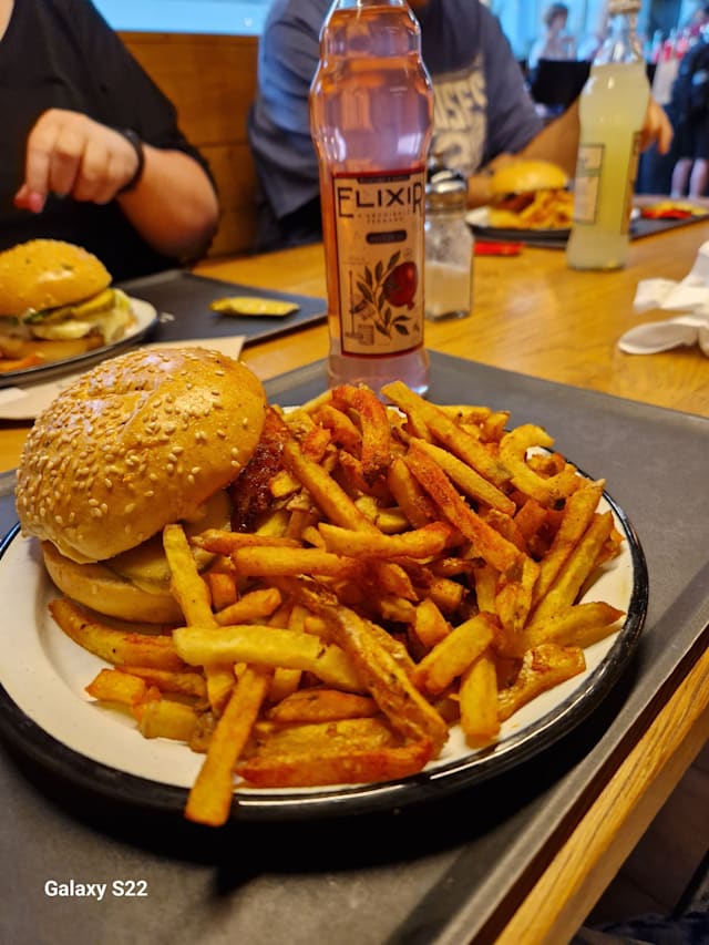 10/10very good hamburgers and fries. my kids loved them as well. Good price quality, about 15€ per burger solo without formula. inside the food court hall. excellent service very attentive.