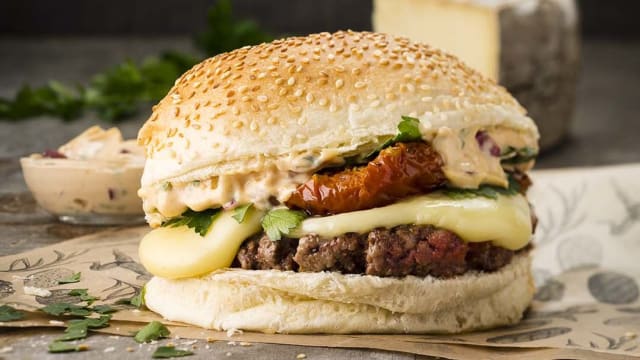 - Bœuf, tomme des alpes au lait cru, tomates mi-séchées, persil plat, sauce tata fernande (sauce cocktail artisanale)