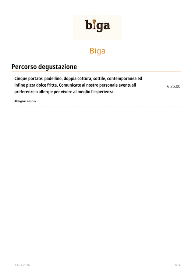 PERCORSO 5 PORTATE€25 per guest