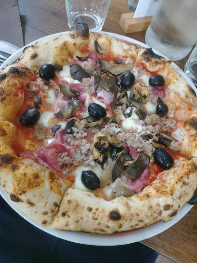 - Mozzarella, basilico, patate al forno, mortadella, pecorino