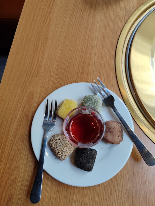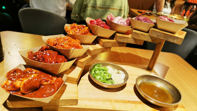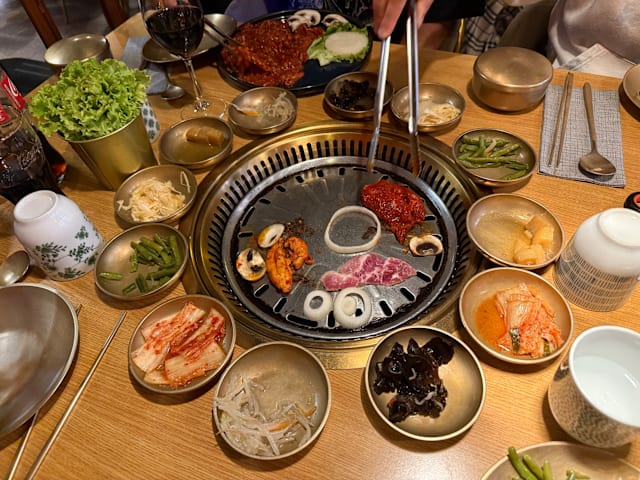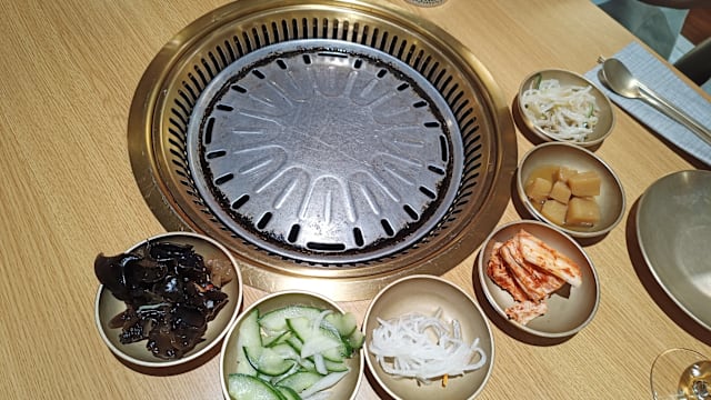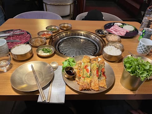 6/10The food (bulgogi beef) was good but cold. The table was subject to cold air coming from the cold. The ambiance was nice but noisy. Bottle of water and tea far overpriced. The Fork reduction was not applied.