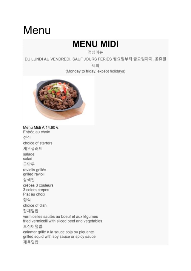 10/10The service is always very good. Food wise it depends on the dishes. But certainly better than many Korean restaurants in the Marais. It has become my usual lunch spot these days !!