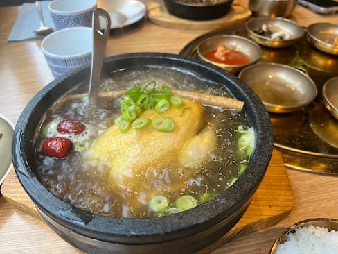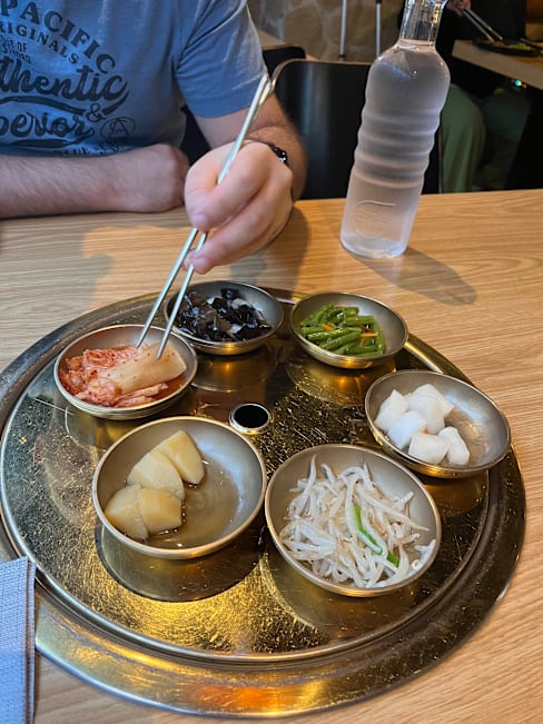 9.5/10Pretty good place - excellent bibimbap boiling hot as it should be and served in stone bowls. Traditional Korean side dishes were less good than in other places but the main course was perfect. Excellent location as well.