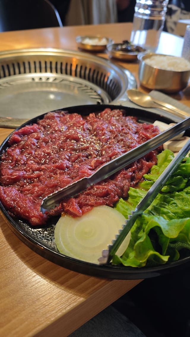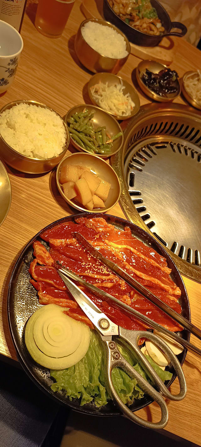 4.5/10If you want authentic/tasty Korea BBQ, don't come. The quality of the meat is very ordinary, and pork belly is too thin, the beef is not tender, not much fat. No one changes the grill for us, so in the end, all the grease sticks on the grill plate, making it difficult to grill meat. Besides, they don't provide enough seasoning for the meat, so it is tasteless. The restaurant is not run by Korean so no wonder it is not authentic, and the food is not good.