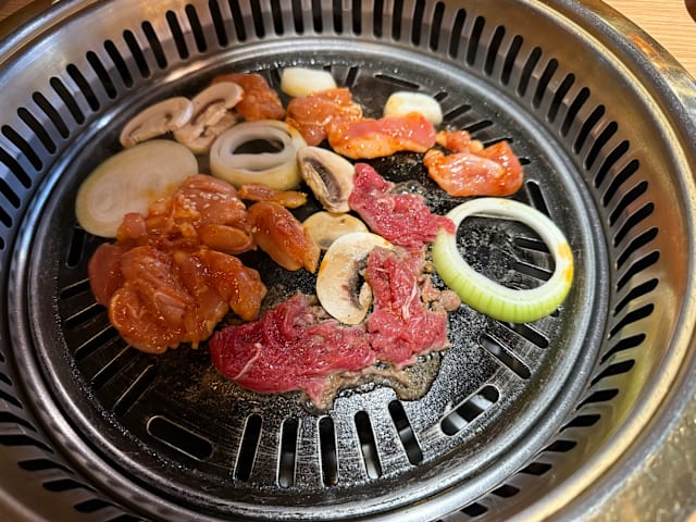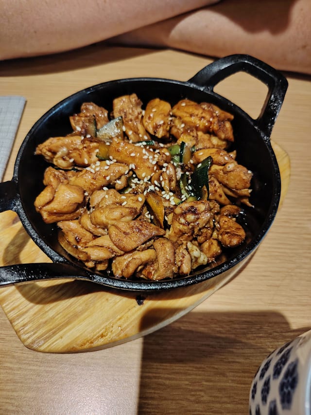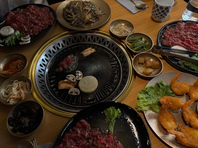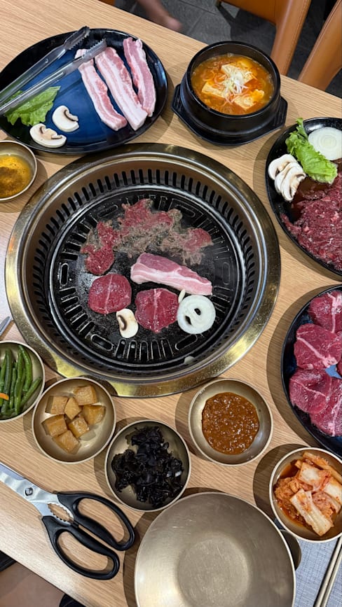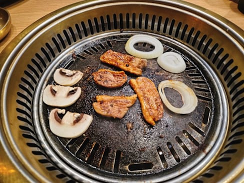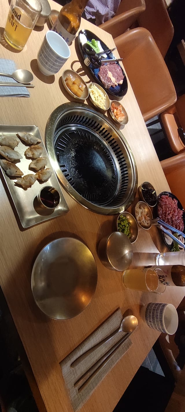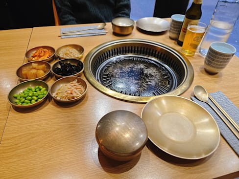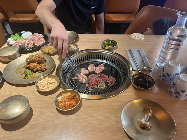 4.5/10First off, there's barely any space for your legs. About the food, the sides that are usually just given in Korean restaurants are not here. You have to pay to have them. Where do you pay them? It's the "vegetables assortments" that you get with the BBQ. You'd think that it'd be the usual veggies that you grill with the meat, but no, it's the small sides. The meat wasn't great, we got served the wrong one (we only noticed after that it was not just that the meat was not nice), it's not tender or juicy however you cook it. Small portions too.