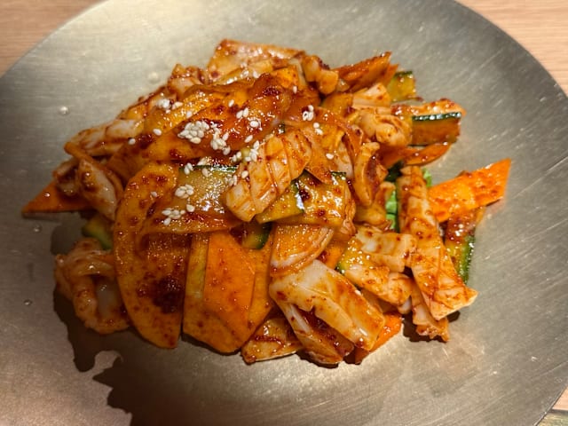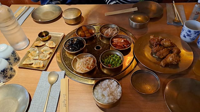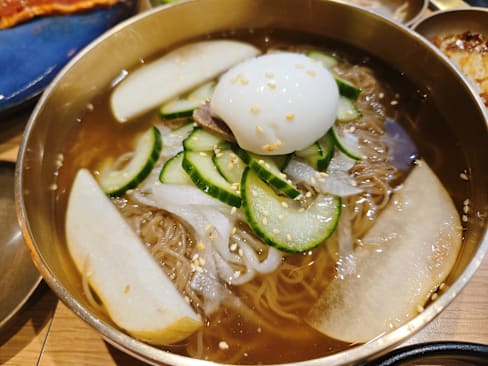 8/10+3To be completely honest, I wouldn’t call it truly traditional Korean food. We had barbecue, and while the galbi was a bit tough, there were no dipping sauces or fresh vegetables served with the meat, which made it feel quite different from the Korean style I’m used to. That said, the duck was tender and delicious — if you’re planning to have barbecue here, I’d definitely recommend the duck over beef. We ordered naengmyeon well, and the portion was very generous. I asked for some mustard and vinegar to add, and it turned out great. While the food itself wasn’t entirely authentic and didn’t fully satisfy my craving for true Korean flavors, the service was outstanding. The staff were incredibly kind, attentive even during busy times, and brought out extra sauces or refilled side dishes just like in Korea. Their friendliness really made the experience much better!
