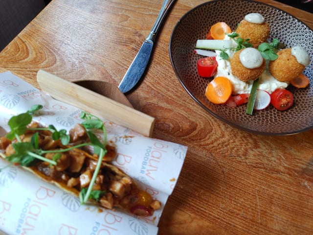 7/10A good restaurant close to where you live is always a bonus. So we were glad to find 'bij Blauw' only a fifteen minute drive away. One of us had a vegetarian meal and that was disappointing; too much fat and not enough taste. The meat dish was better but perhaps with too many different tastes (coquilles and 'parelhoen' as main). We also felt the dishes were on the expensive side...