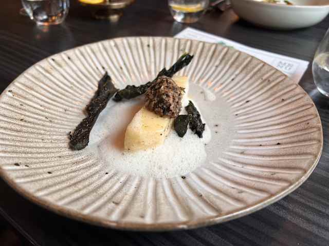 - Truffelaardappel crème | furikake krokant | beurre blanc met vleugje mierikswortel