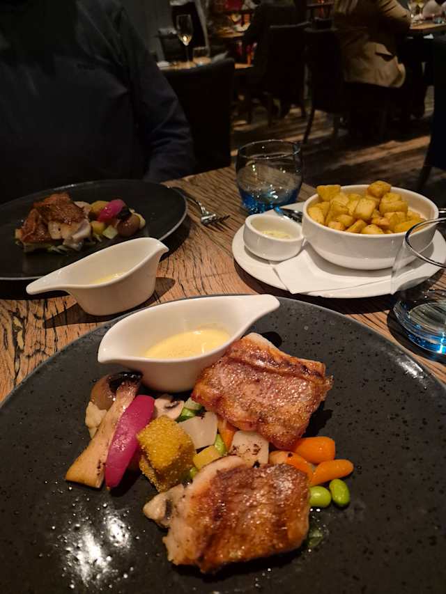 - Huis gerookte eendenborst met kweeperen compote, knolselderij puree en een vadouvan mayonaise.