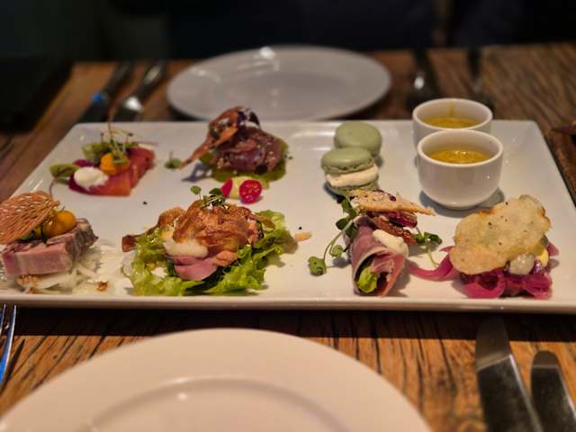 - Proeverij van alle voorgerechten op één bord geserveerd.