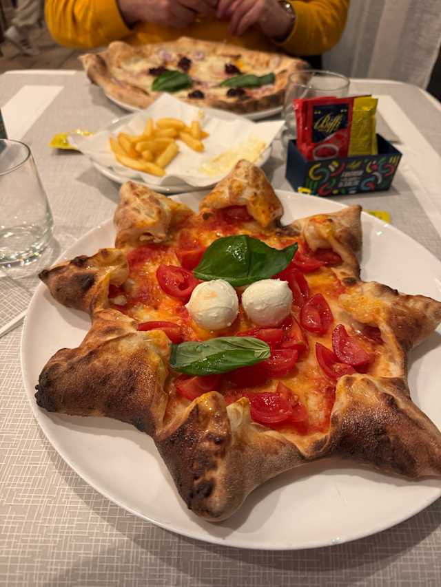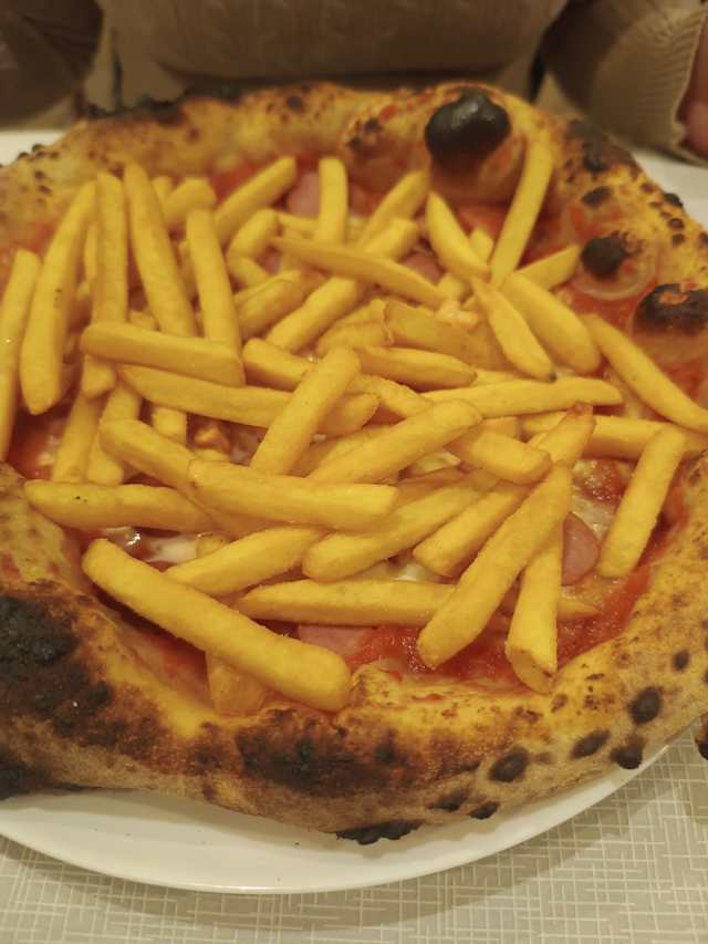 - Pomodoro la rosina, fior di latte di agerola, wurstel, patatine fritte