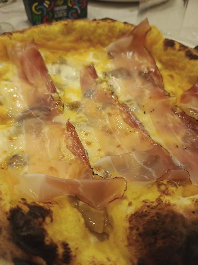 - Pomodoro la rosina, fior di latte di agerola, prosciutto cotto, funghi champignon, olive, carciofini tagliati, olio EVO