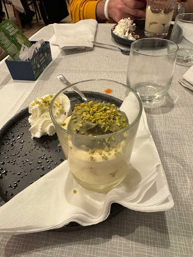 - Crema di pistacchio, fior di latte di agerola, rose di mortadella, granella di pistacchio, stracciatella di bufala