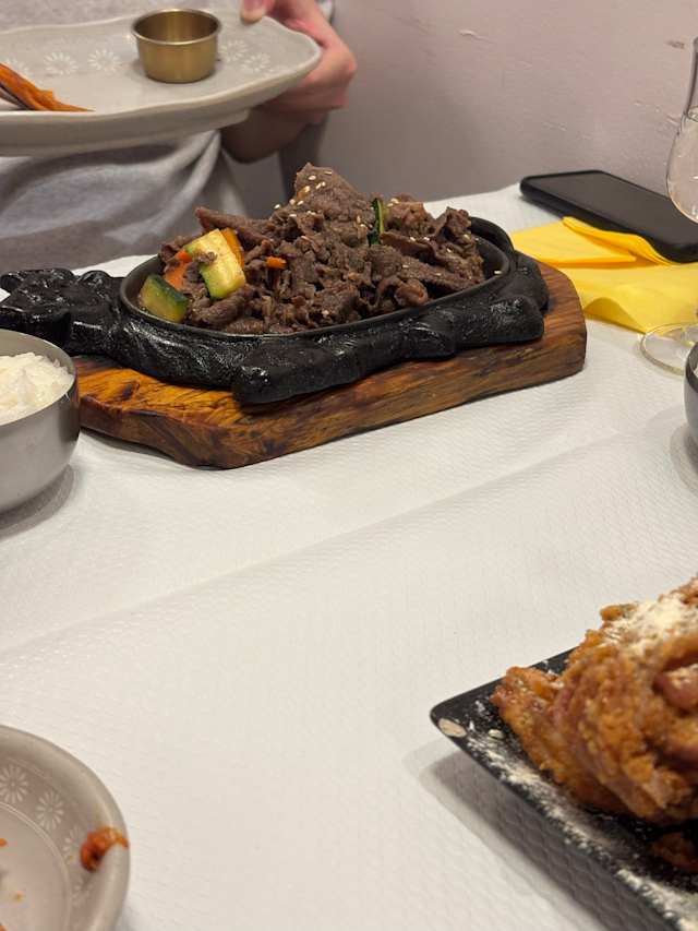 5/10Firstly, the waiter wasn’t friendly to us, we were 3 asian women. We order 3 plats of Bibimbap (not original taste), Barbecue beef (small pieces), and Big portion of chicken snow cheese & chicken soy garlic. Note that * we only have 4 little pickles sides to share among 3 of us (it’s not individually served with our own plats, not hygiene) **Please note that < The Korean chicken> 1 small portion 16€ and big portion 30€ is MENU (so there is no %discount for Chicken because it’s a MENU not a plat...it’s quite a trick! We ended up paying about 18-20€/ persons for only 3 plats (no entrée , no desserts and no drinks) Without discount < Fried Chicken for the price of 30€ > is very expensive for what it is compared to other Korean restaurants. Disappointed ☹️