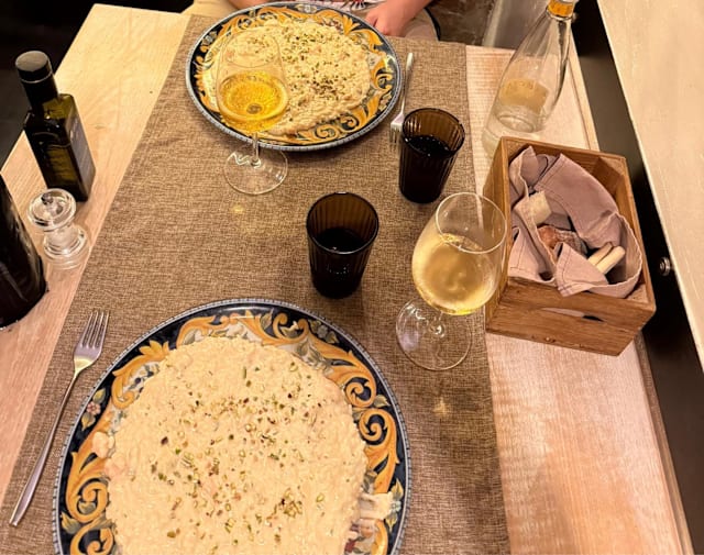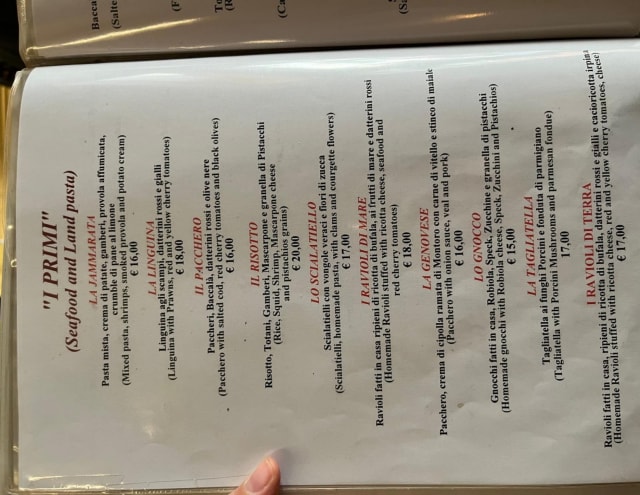 10/10The owner was very cordial,friendly, and informative about both the menu and the wine selection. He told us that his wife was the chef. We dined on homemade ravioli with seafood and homemade gnocchi with speck, pistachio and potato creme. Buonissimo!! We highly recommend this ristorante which is conveniently located near the Salerno train station.