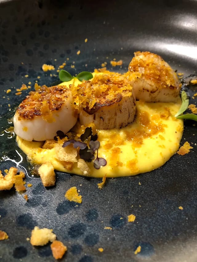 Ravioli agli scampi crudi e cotti con riduzione al franciacorta