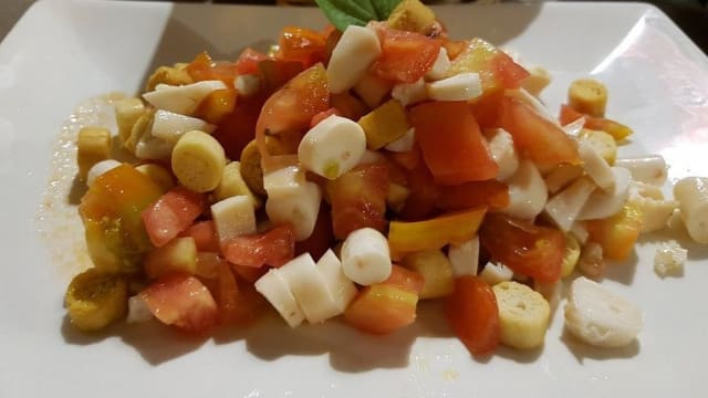 - Bun artigianale, burger di chianina, provola, cipolla caramellatа, ромodoro, insalata iceberg.