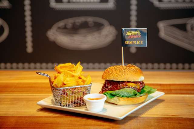 - Hamburger, salsa cheddar, insalata, pomodoro e salsa sbagliata